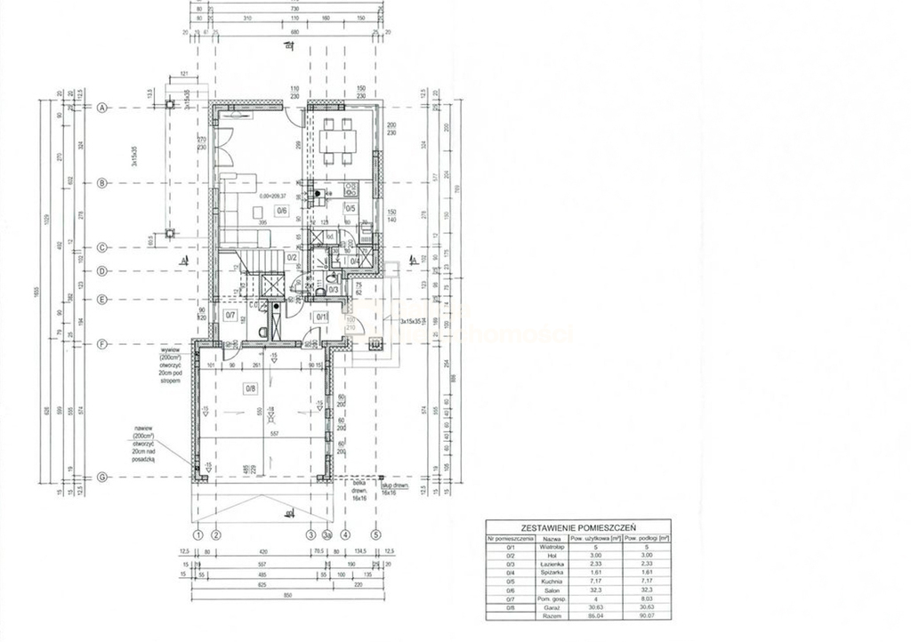 Układ pomieszczeń: Parter: