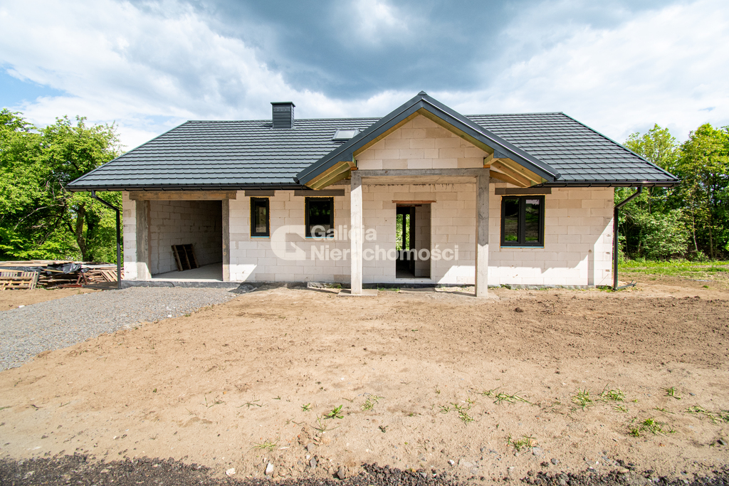 * dom w stanie surowym zamkniętym (drzwi zewnętrzne oraz brama garażowa w trakcie realizacji),