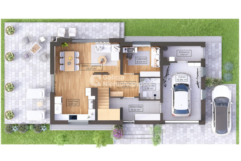 Parter – 75,35 m² (79,59 m² z garażem):