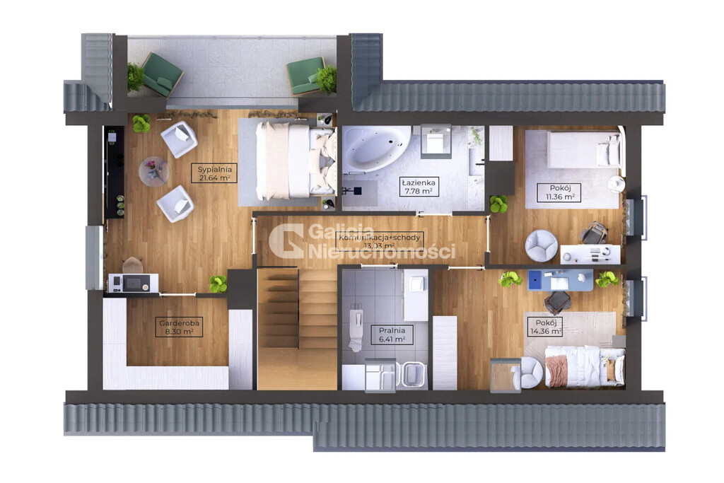 Piętro – 66,14 m² (80,97 m² po podłodze):