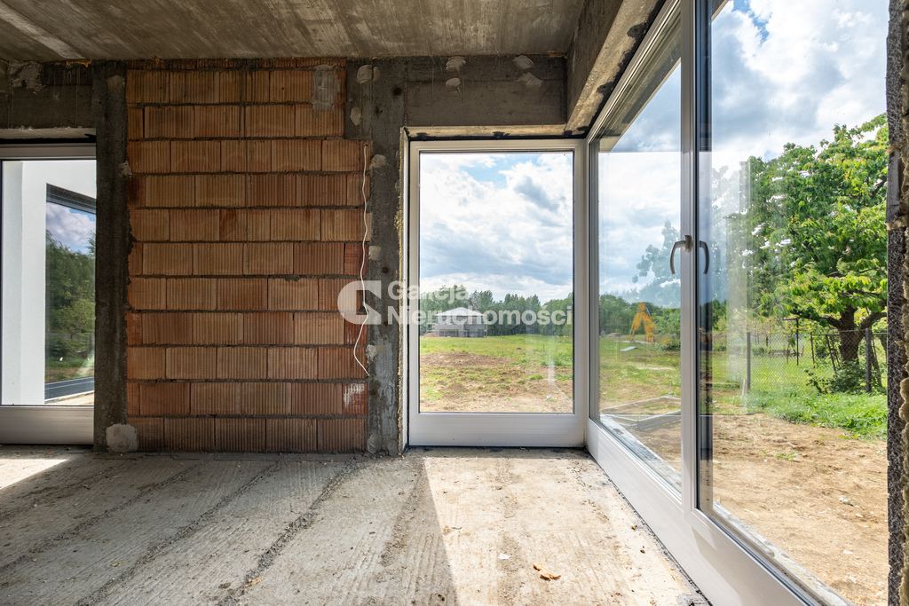 Pierwszy z domów oferuje możliwość pełnej personalizacji wnętrza – deweloper celowo nie wykonał ścian działowych, pozostawiając swobodę aranżacji przyszłemu właścicielowi. Istnieje opcja wykonania ścian zgodnie z gotowym projektem – bez dodatkowych kosztów.