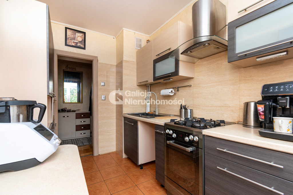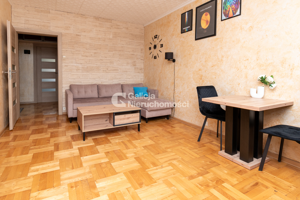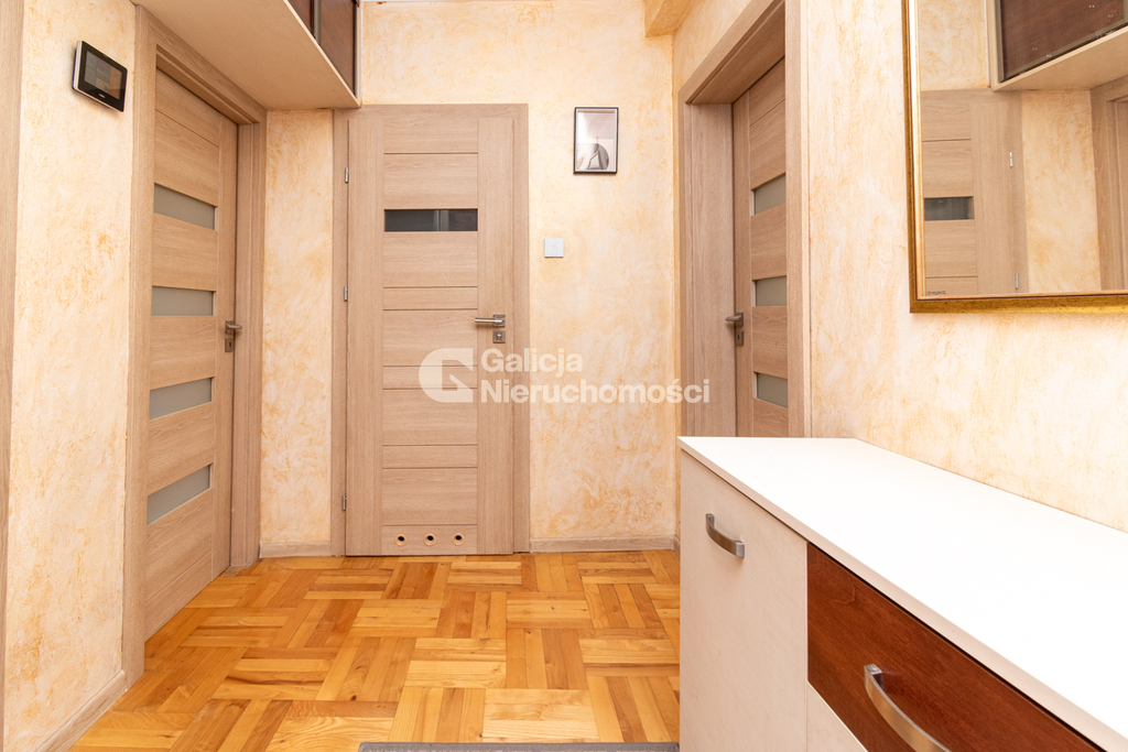 Lokal utrzymany jest w bardzo dobrym stanie technicznym i nie wymaga dodatkowych nakładów finansowych. W mieszkaniu znajdują się parkiet oraz płytki, zamontowano nowe drzwi zewnętrzne i wewnętrzne. Kuchnia została wykonana na wymiar i wyposażona w niezbędny sprzęt AGD. W pokojach znajdują się funkcjonalne szafy wnękowe, które zapewniają dużo miejsca do przechowywania. Przed budynkiem dostępne są ogólnodostępne miejsca postojowe dla mieszkańców.