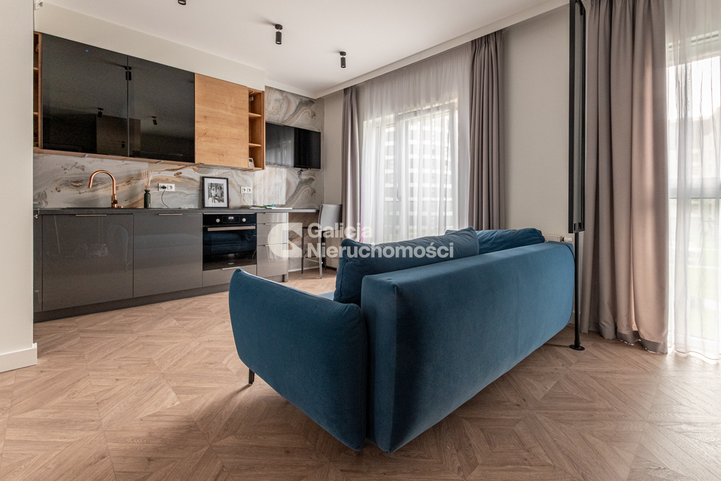 Mieszkanie jest w pełni wykończone w wyższym standardzie, umeblowane i wyposażone we wszystkie niezbędne sprzęty AGD.