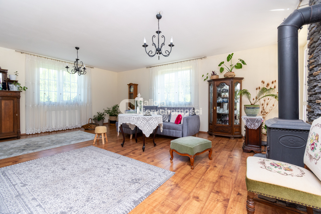 Dom usytuowany jest na przestronnej, 20-arowej działce, która daje duże możliwości aranżacyjne – od stworzenia wymarzonego ogrodu po prywatną strefę relaksu. Pięknie zagospodarowana przestrzeń wokół domu sprzyja spędzaniu czasu na świeżym powietrzu i tworzy wyjątkowy, przytulny klimat.