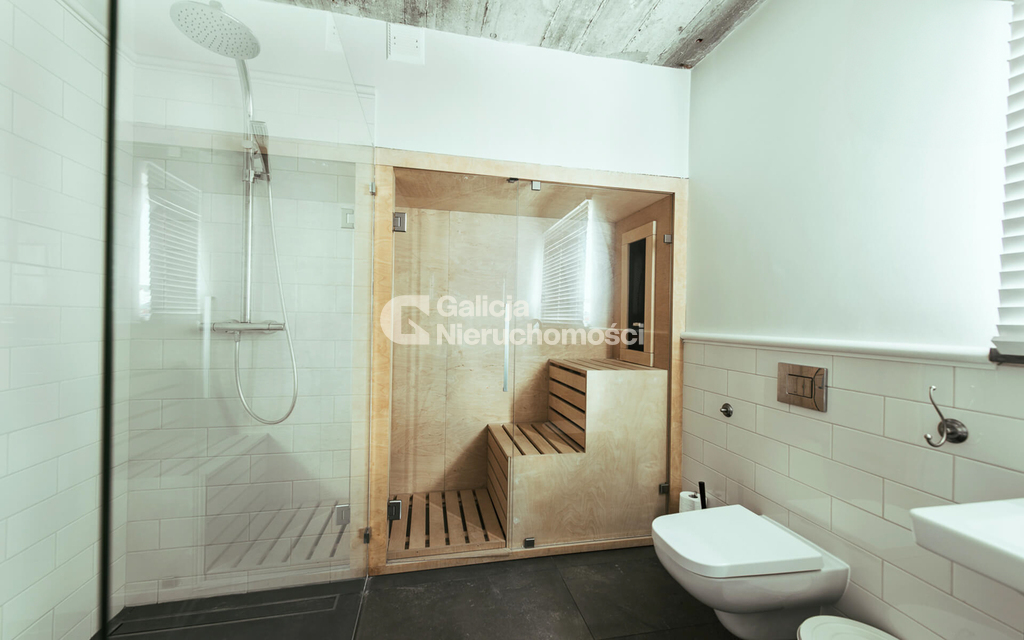 – na pierwszym piętrze 2 sypialnie, duża łazienka z prysznicem i sauna na podczerwień