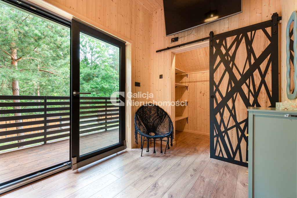 - salon z dużymi oknami i wyjściem na taras